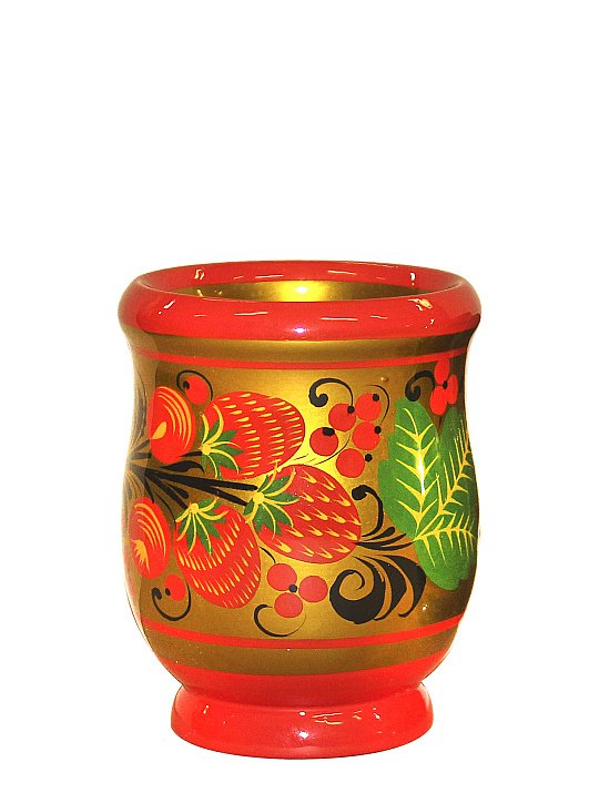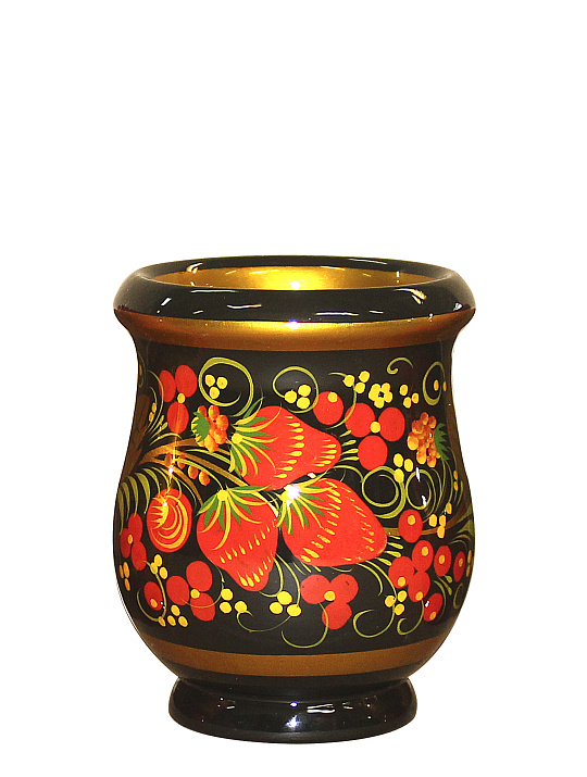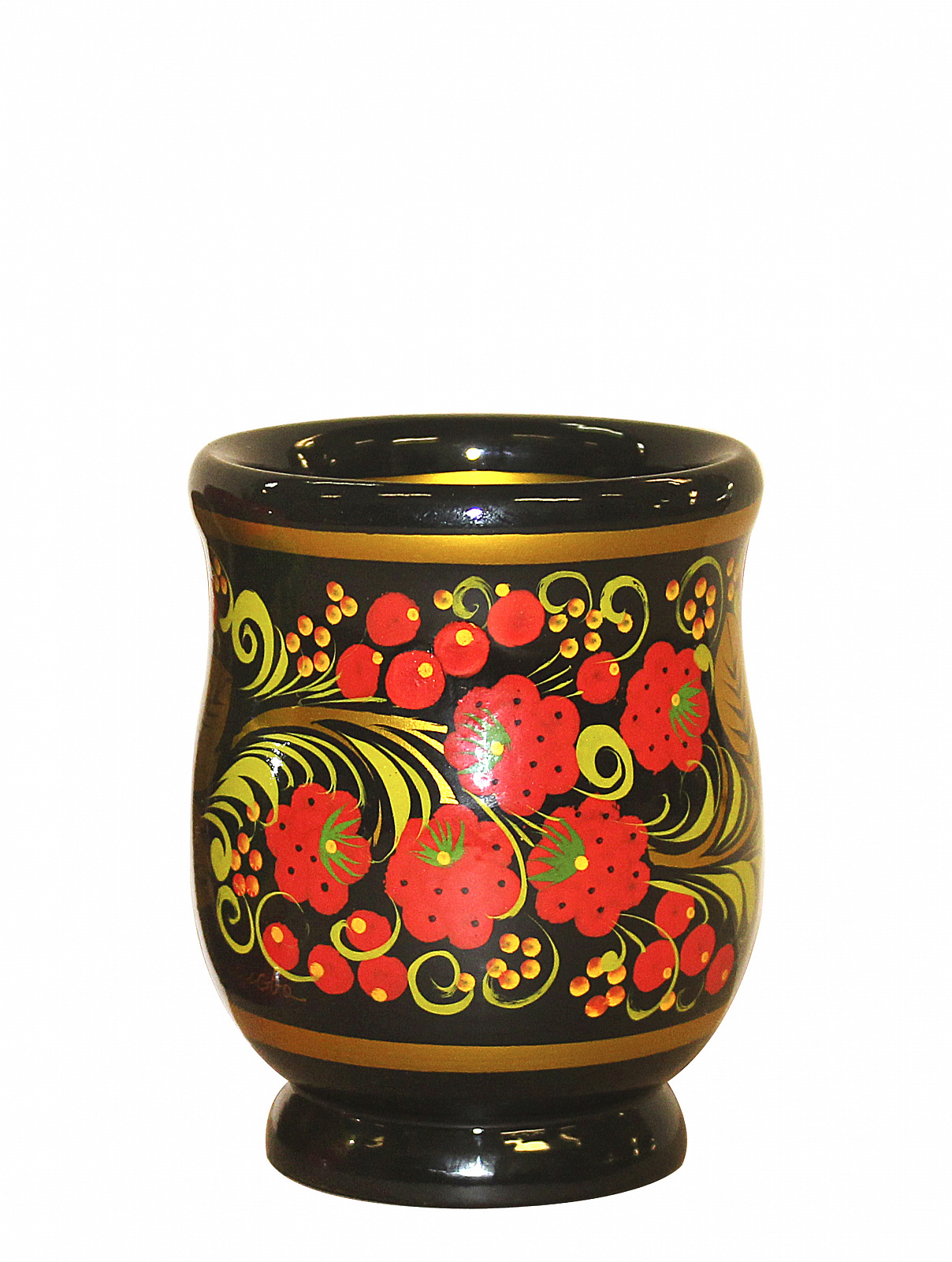 Бокал. Размер изделия 90х70х70 мм. Изготовлен в полном соответствии с традиционной хохломской технологией золочения. Выточен из цельного дерева вручную. Имеет авторскую роспись в технике фонового письма. Роспись «Малина». Лаковое покрытие и многократный высокотемпературный обжиг делает изделие влагозащищенным и износоустойчивым. Все применяемые при производстве материалы натуральны и экологичны. Бокал предназначен для холодных и горячих напитков, а также служит элементом декора помещения. На каждом изделии имеется подпись автора росписи. Упаковка — пакет.